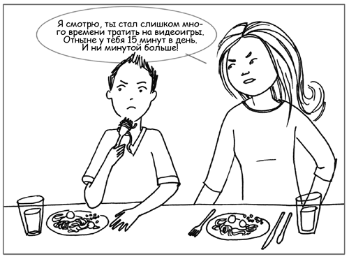 Ребенок что-то делает, родитель на это реагирует, а дальше уже ребенок реагирует на реакцию родителя. И так по кругу! Причем у многих родителей – если не у большинства – приучение к дисциплине строится на наказании за проступок (в придачу к доброй порции ругани): поставить в угол, отшлепать, лишить чего-нибудь, не пустить гулять и т. д. и т. п. Неудивительно, что страсти в семьях так и кипят! Но как мы уже объяснили, приучать детей к дисциплине можно иначе, способом, который во многом устраняет необходимость дисциплинарного воздействия.