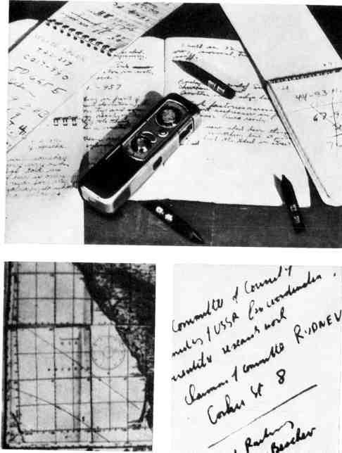Портативный фотоаппарат «Минокс», шпионские записи и зарисовки.