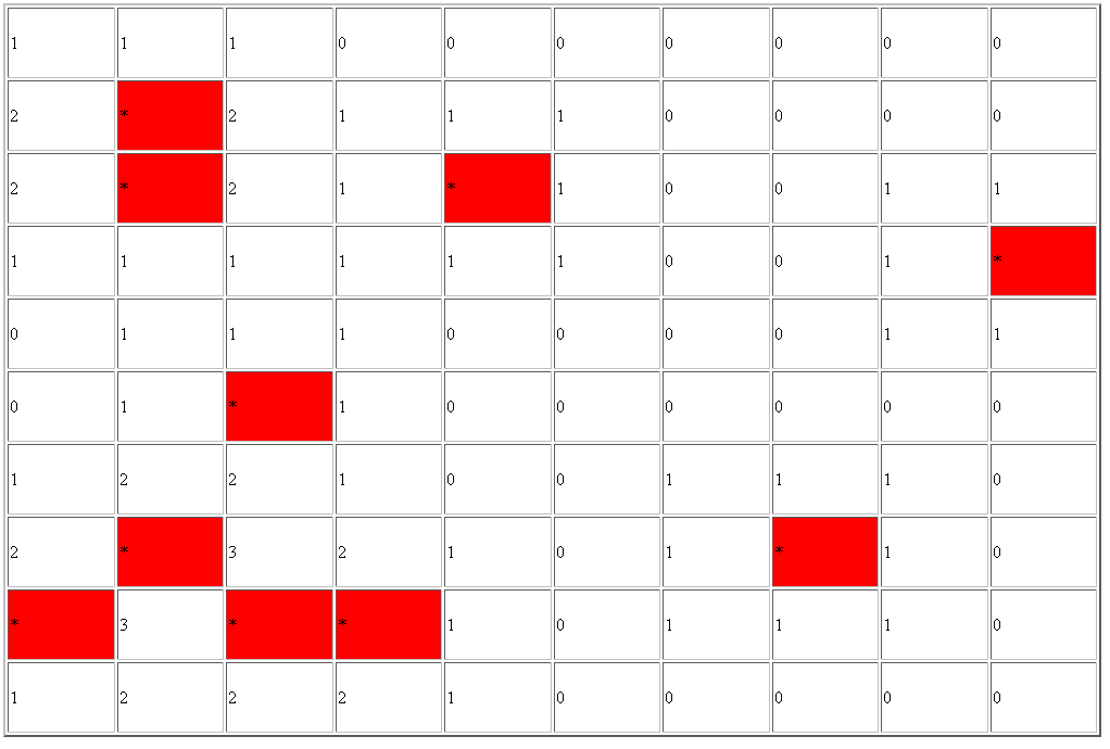 В прошлой главе мы остановились на том, что у нас была табличка, в которой рисовались бомбы в виде символа "*" или клетки без бомб в виде точки. Но это не очень–то похоже на сапёр в который мы все привыкли играть. Там вроде как в каждой клетке пишется количество соседних с ней клеток в которых есть бомба.