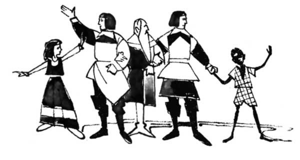 — Мы возьмём на перевоспитание короля! — сказал Старший Брат. — Теперь у нас прибавится работы. Король станет нашим подмастерьем. Он будет ткать материю для всех голых и озябших.