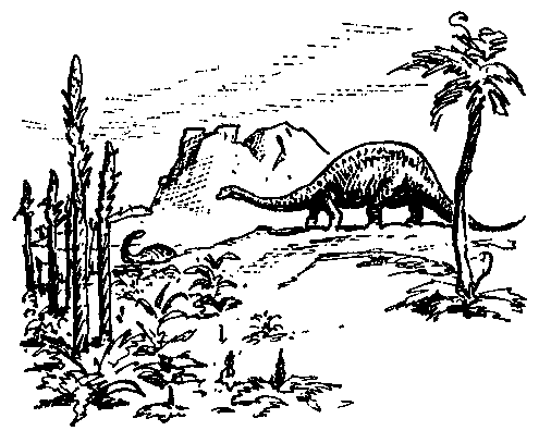 Эти животные — семисаженные чудовища с могучими костями — некогда были, вероятно, властелинами земли. Рядом с ними нет следов никаких иных растений, кроме папоротников и ликоподиев. Ящеры питались мясом — они поедали друг друга.