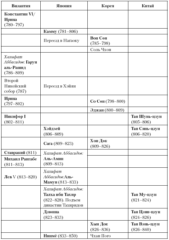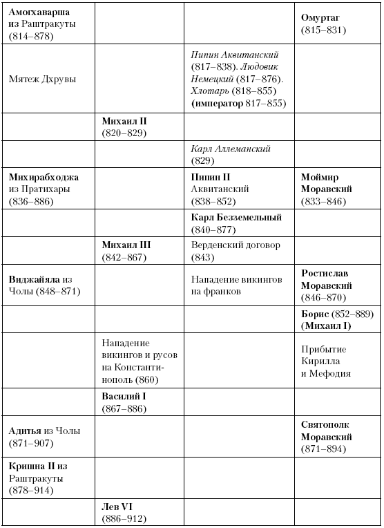 (обратно)Михаил II правил с 820 по 829 год, его сын Феофил – с 829 по 842 год. Вместе Михаил II, Феофил и Михаил III составляют «фригийскую династию» византийских императоров. (Прим. авт.)