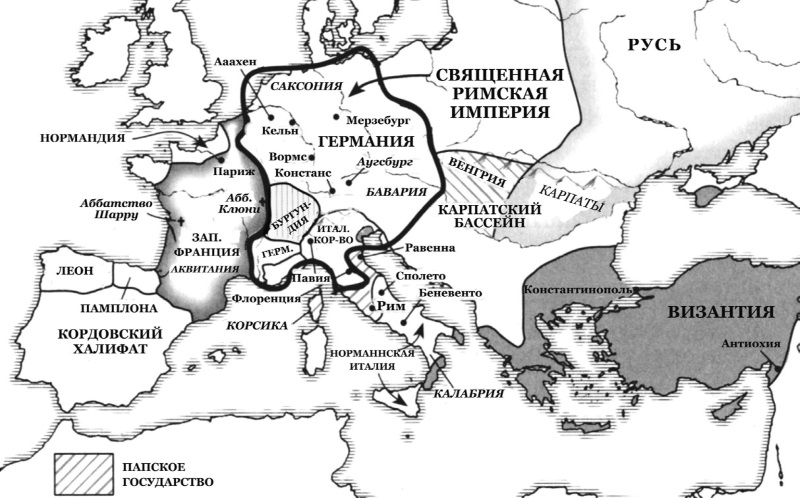 (обратно)Эти герцогства, входившие в состав Восточно-Франкского королевства как небольшие отдельные области, называют «коренными». Это название подразумевает, что в отдаленном прошлом герцогства имели племенную основу, и племенная общность, хоть и давно забытая, стала тем корнем, из которого произошла общность государственная. В других частях Европы «герцогствами» обычно становились территории, границы которых определялись из чисто административных соображений. (Прим. авт.)
