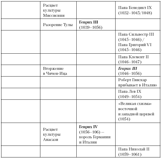 (обратно)Генрих III незадолго до своей смерти избрал Виктора II (1055–1057) в качестве папы; когда же и Виктор умер от лихорадки, его преемником стал Стефан IX (1057–1058), затем итальянец Бенедикт X (1058–1059), который не был посвящен в сан по всем правилам, но пытался сопротивляться назначению Николая II, пока сторонники последнего не выдворили его из Рима. (Прим. авт.)
