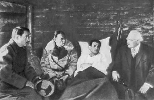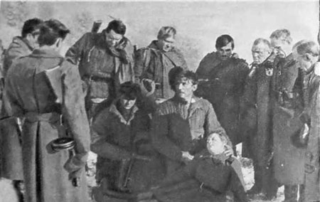 Катя Ярцева и Млынский склонились над Ерофеевым. Тот, тяжело дыша, силился улыбнуться.