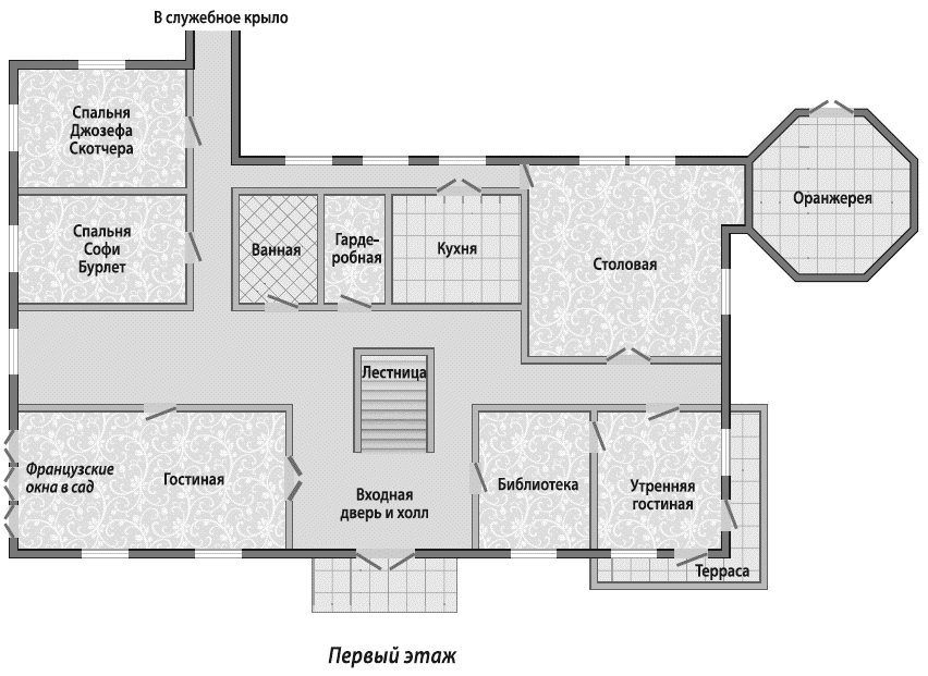 Леди Плейфорд встала из своего кресла у окна. Она никогда не бросала в него ни взгляда, Гатеркол заметил. Если рядом было человеческое существо, леди Плейфорд предпочитала изучать его, а не тратить время на созерцание природы. Хотя вид из ее окна открывался превосходный: розарий, а за ним большой, совершенно квадратный газон со статуей ангела точно в центре – подарок покойного виконта Гая Плейфорда жене на тридцатую годовщину свадьбы.