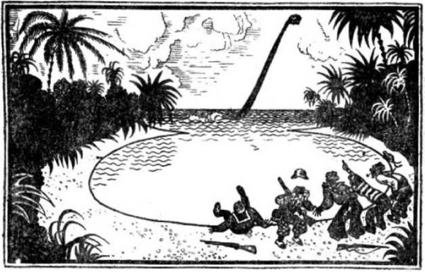 — Мы стоим на берегу прямо против входа в бухту. Нас — пять человек различного возраста, но отнюдь не склонных к галлюцинациям, и вот что мы видим: из-за деревьев левого берега в море появляется предмет вроде телеграфного столба, наклоненного под углом в сорок пять градусов. На конце он снабжен не то набалдашником, не то треугольной головкой. Он быстро движется вправо и через полторы-две минуты исчезает за лесом противоположной косы. Вот все… Понятно?