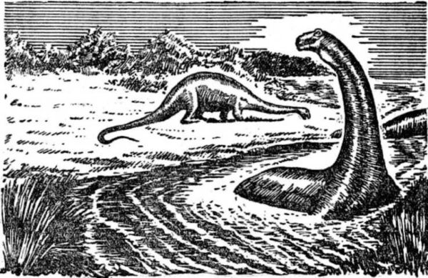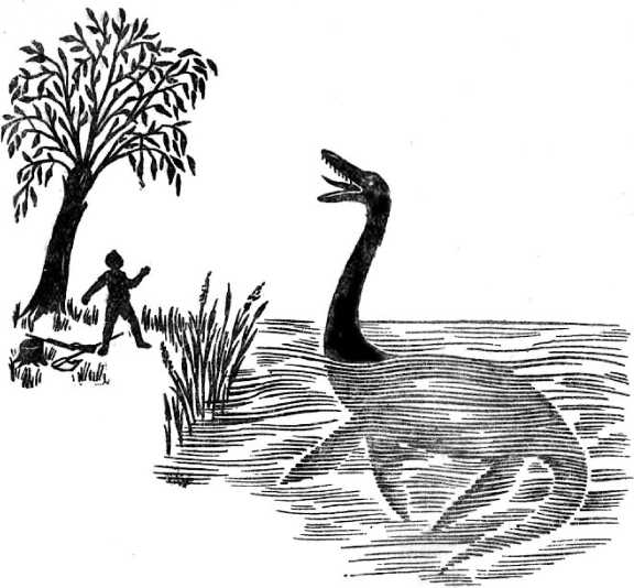 — Конечно, жаль… Зверь, а не змей. Я оговорился не случайно. Зоолог считает пририсованные на уровне воды плечи более чем вероятными. Иначе шея с головой не могла бы так высоко торчать, не стояла бы под таким крутым углом. Следовательно, получается зверь с туловищем и длинной змеевидной шеей. Может быть, вроде плезиозавра. Слепой, потом у что в его глубоководной жизни зрение все равно не нужно.