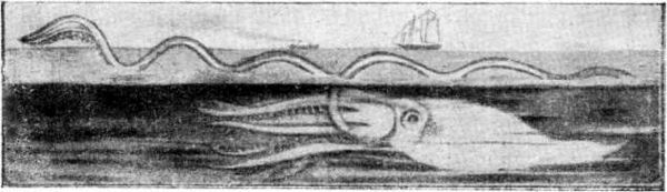 Впечатление извивающейся змеи может дать и морское чудовище осьминог. Величина его действительно внушительна. Имеются совершенно точные данные об осьминоге, который обладал телом длиной в 18 фут. и щупальцами в 60 фут. длиной. Может быть, существуют и еще большие экземпляры. Плавая на поверхности моря, шевеля своими щупальцами, гигантский осьминог может сойти вполне за морскую змею.