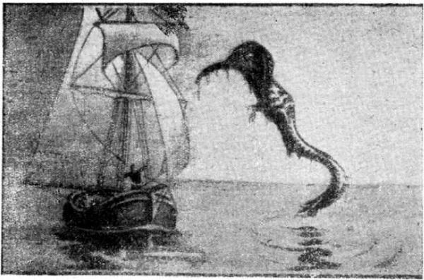 Чуть не ежегодно капитаны кораблей, бороздящих Атлантический океан, сообщают о появлявшихся на поверхности моря огромных существах, напоминающих собою гигантских змей, но ни разу подобное существо не было поймано. В настоящее время размеры этих предполагаемых «змей» неуклонно уменьшаются: километры превращаются в сотни метров, сотни — в десятки. Американец д-р Барш полагает, что «морские змеи» — не что иное, как гигантские спруты, осьминоги.