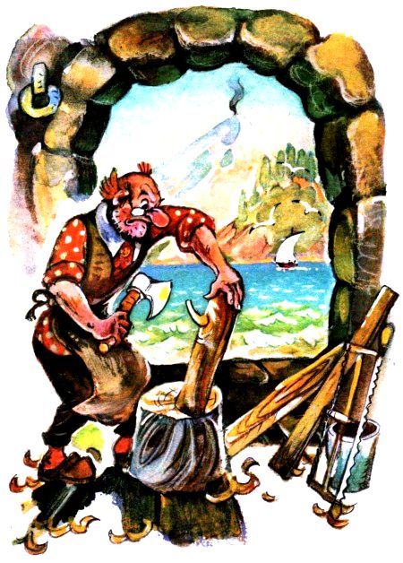 Джузеппе уронил рубанок, попятился, попятился и сел прямо на пол: он догадался, что тоненький голосок шёл изнутри полена.