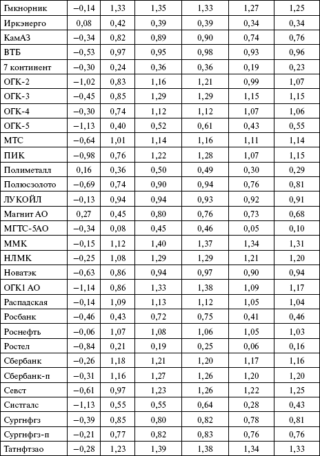 (обратно)Только по компаниям «Новатэк» и «Система Галс» значение коэффициента эксцесса близко к нулю.