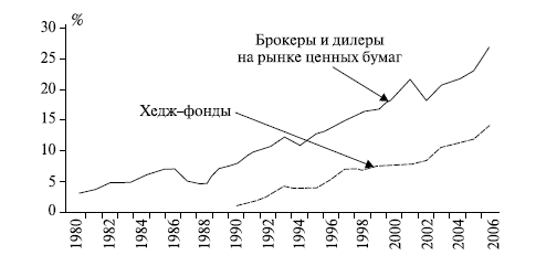Резкий рост объемов на этом рынке, с одной стороны, говорил о росте спекулятивной составляющей, а с другой – о том, что участники рынка надеялись на страхование рисков через новые инструменты. При этом особенностью рынка производных было то, что значительная часть сделок приходилась на внебиржевой сегмент. На самом деле это создавало новые риски, которые в полной мере стали понятны в условиях кризиса 2008 г.