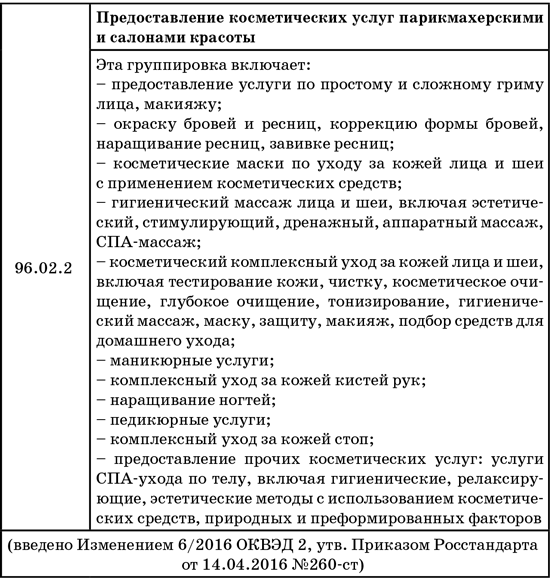96.02 – предоставление услуг парикмахерскими и салонами красоты.