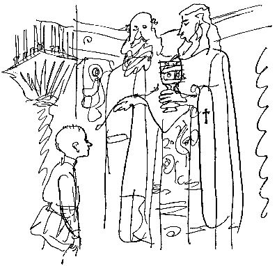 Появились священники, которые надевали в передней через голову свои траурные глазетовые ризы и бархатные лиловые камилавки. Раздался бас дьякона, из-под серебряной крышечки кадила повалил душистый дым росного ладана, душно обволакивая все комнаты нашей маленькой квартиры, все закоулки ее, и сквозь эти пепельно-сиреневые клубы я видел колеблющиеся язычки восковых свечек и как бы смазанный священным маслом, позолоченный лоб мамы с тенью темных ресниц на похудевших и еще более побелевших за ночь щеках.