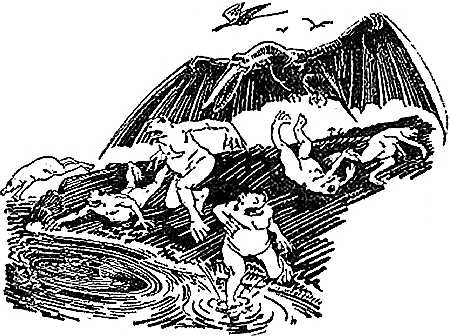 — А если в озере еще такие звери остались? — говорит Бабкин. — И он поплыл на дно звать себе на подмогу? Давай-ка сматываться отсюда к лешему.