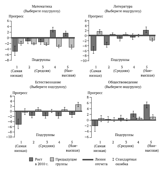 Прогресс ниже ожидаемого: классификация перформанса, относящаяся к учителю, школе или округу, рост успеваемости в которых оказывается ниже ожидаемых уровней.