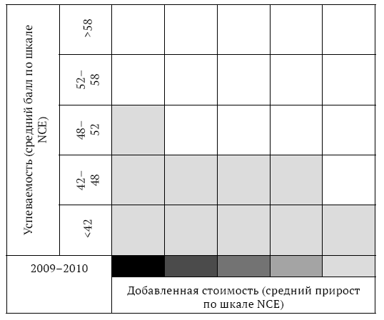 (обратно)Концепция зоны безопасности (safe harbor) была принята в рамках закона No Child Left Behind Act (NCLB). Это своего рода льгота, которая позволяет одной или нескольким группам школьников в рамках школы иметь результаты тестов ниже установленного норматива при условии, что эти школьники демонстрируют достаточный ежегодный прогресс в учебе, а показатели школы в целом соответствуют нормативам надлежащего годового прогресса (AYP). – Примеч. пер.