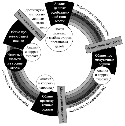 (обратно)Всеобщие промежуточные оценки – система оценок в масштабе штата или школьного округа. Такая промежуточная оценка успеваемости получается путем расчета на основании текущих оценок учеников либо производится по результатам специальных тестов. Тестирование или расчеты проводятся в установленные для каждой дисциплины интервалы – ежеквартально, каждые шесть недель или по окончании каждого блока учебной программы. – Примеч. пер.