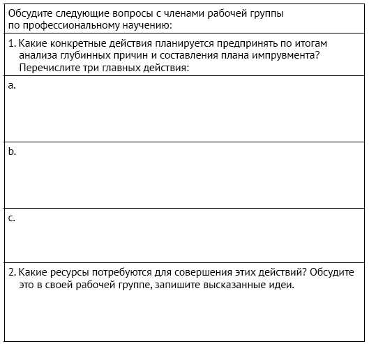 Задание: Обсудите с коллегами план импрувмента и совместно определите конкретные действия по реализации этого плана.