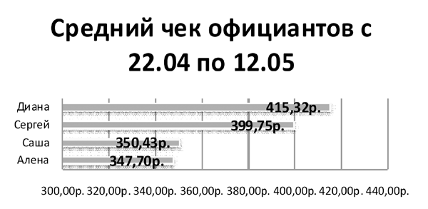 Также следует рассматривать статистику по личной эффективности каждого сотрудника. Вам, безусловно, будет легче, если у вас в заведении установлена система автоматизации (R-keeper, Micros, iiko и др.). Но даже если у вас ее нет, без статистики вам все равно не обойтись. В этом случае придется собирать показатели вручную.