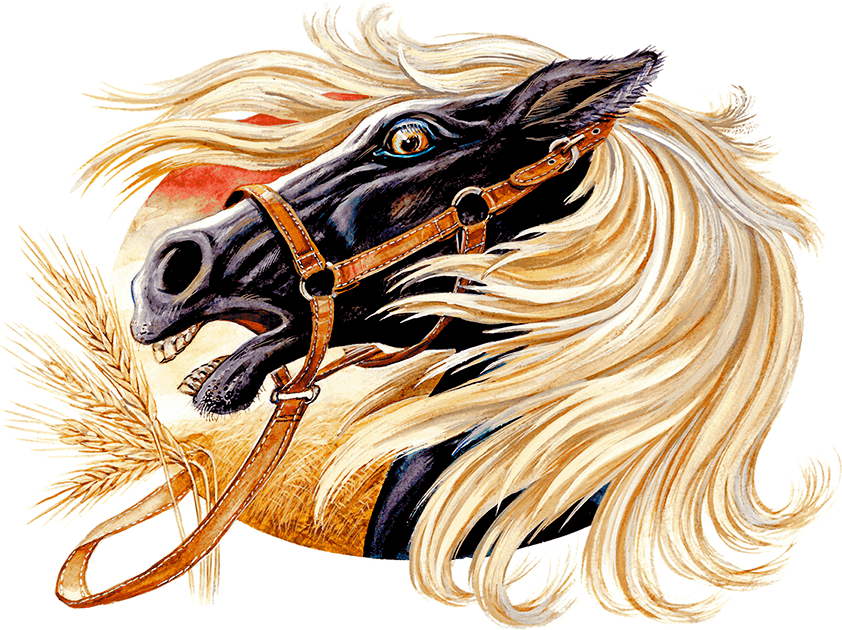 Панкрату трудно было прокормить коня, и конь начал ходить по дворам побираться. Постоит, пофыркает, постучит мордой в калитку, и, глядишь, ему вынесут свекольной ботвы или чёрствого хлеба, или, случалось даже, сладкую морковку! На деревне говорили, что конь ничей, а вернее – общественный, и каждый считал своей обязанностью его покормить. К тому же конь – раненый, пострадал от врага.