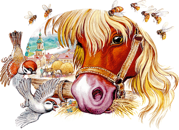 Все улыбались, радовались. Только старая сорока сидела на раките и сердито трещала: должно быть, опять хвасталась, что это ей одной удалось помирить коня с Филькой. Но никто её не слушал и не понимал, и сорока от этого сердилась всё больше и трещала, как пулемёт.