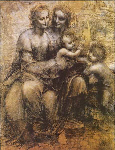 Святая Анна с Марией, младенцем Христом и Иоанном Крестителем. 1507–1508. Бумага, уголь, мел. Национальная галерея, Лондон