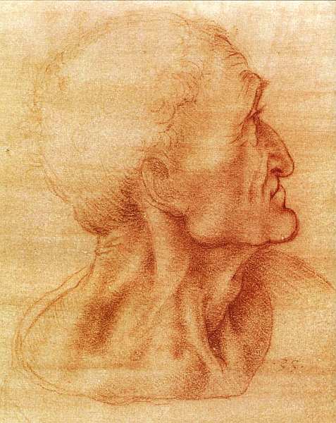 Леонардо создал «Автопортрет», когда ему было около шестидесяти лет. Он потратил всю жизнь на изучение мира, природы и людей, а теперь, когда его творческий путь близился к концу, настал момент взглянуть на себя самого. Но не просто, как смотрят в зеркало, а посмотреть взглядом художника, способного проникнуть в самую суть вещей и умелыми движениями руки запечатлеть увиденное на плоской поверхности листа. Автопортрет, как ни что иное, обнажает мастера не только перед зрителем, но и перед самим собой. Кусочком красной сангины Леонардо набросал несколько линий, но, кажется, не мог быть более честен. Молодость — пора самолюбования, зрелости это ни к чему. Перед нами человек со взглядом мудреца с суровыми и в тоже время спокойными чертами. Мы видим не утомленного старца, а гения, обладающего невероятной внутренней силой, в котором все еще живет страсть. Леонардо серьезен, сосредоточен и полон решимости. Сквозь этот быстрый рисунок проступает законченный образ, к которому нечего добавить.