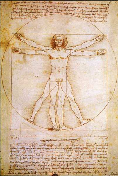 Витрувианский человек. Около 1490–1492. Бумага, коричневые чернила, свинцовый карандаш, перо. Академическая галерея, Венеция