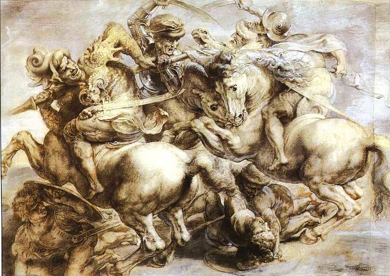 Битва при Ангьяри. 1503–1506. Бумага, уголь, тушь, перо, акварель. Лувр, Париж