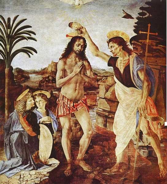 Андреа дель Верроккио. Крещение Христа[2]. 1472–1475. Дерево, масло. Галерея Уффици, Флоренция