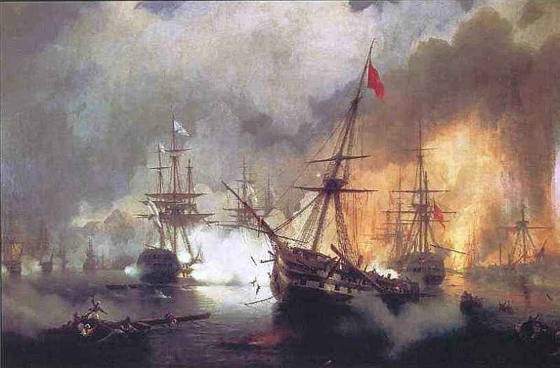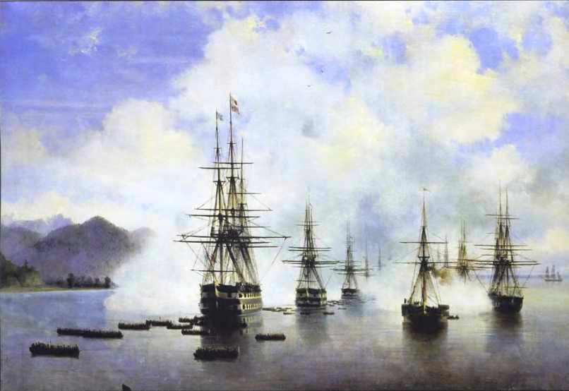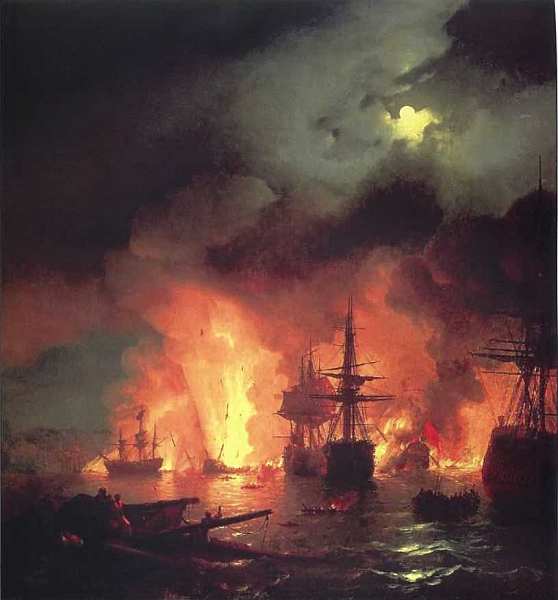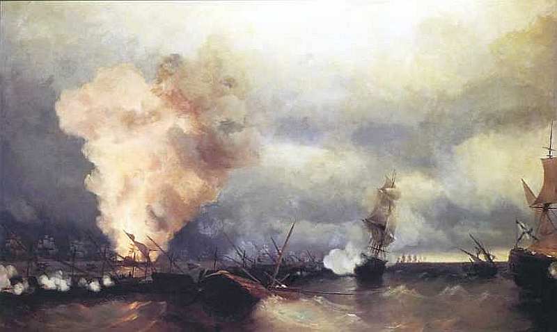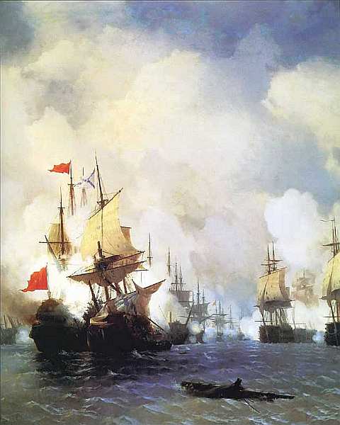 Вклад Ивана Константиновича Айвазовского в батальную живопись значителен. Он запечатлел эпизоды Севастопольской обороны, неоднократно обращался к героическим подвигам русского военно-морского флота. Картины художника, посвященные батальным сценам, по праву стали летописью боевых подвигов русского флота.