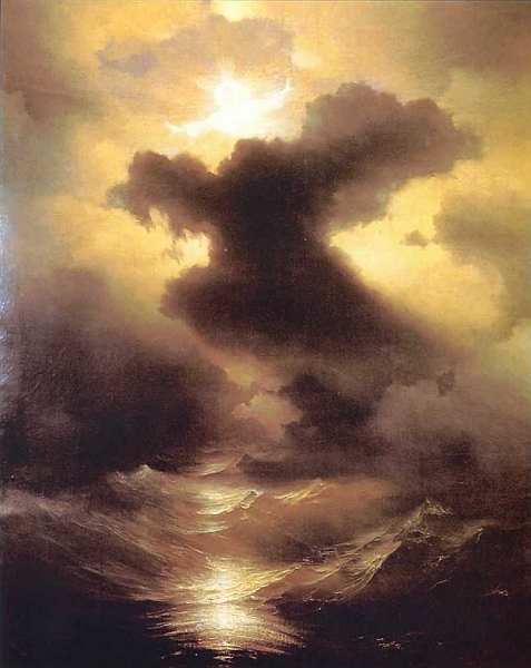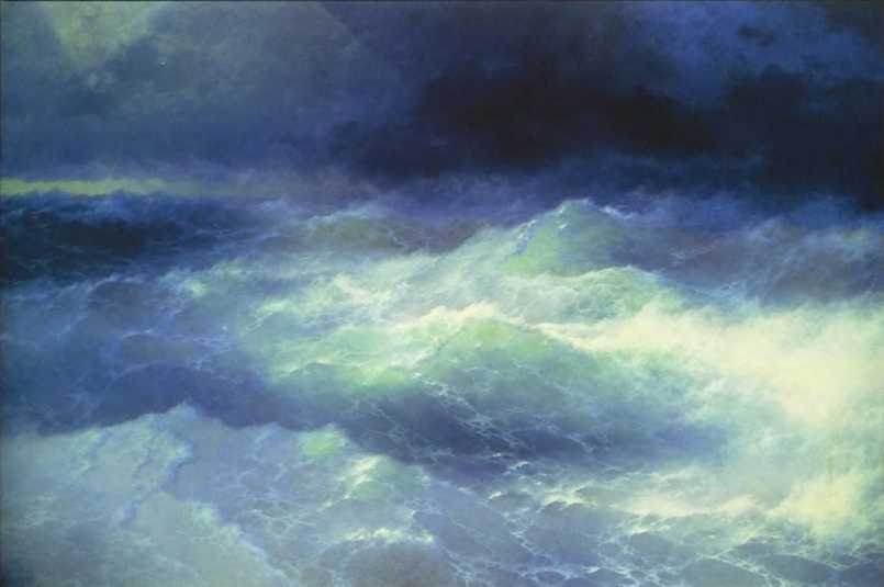 В этой картине художник уподобил неистовую морскую стихию живому одухотворенному существу. Оно катит к берегу пенистые волны, освещенные лунным светом. Колорит композиции, выдержанный в единой цветовой гамме, поражает богатством оттенков.