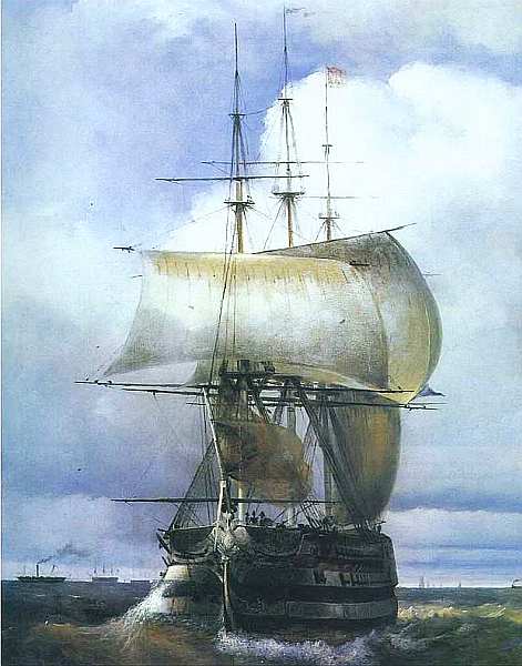 Большой рейд в Кронштадте. Фрагмент. 1836. Холст, масло. Государственный Русский музей, Санкт-Петербург