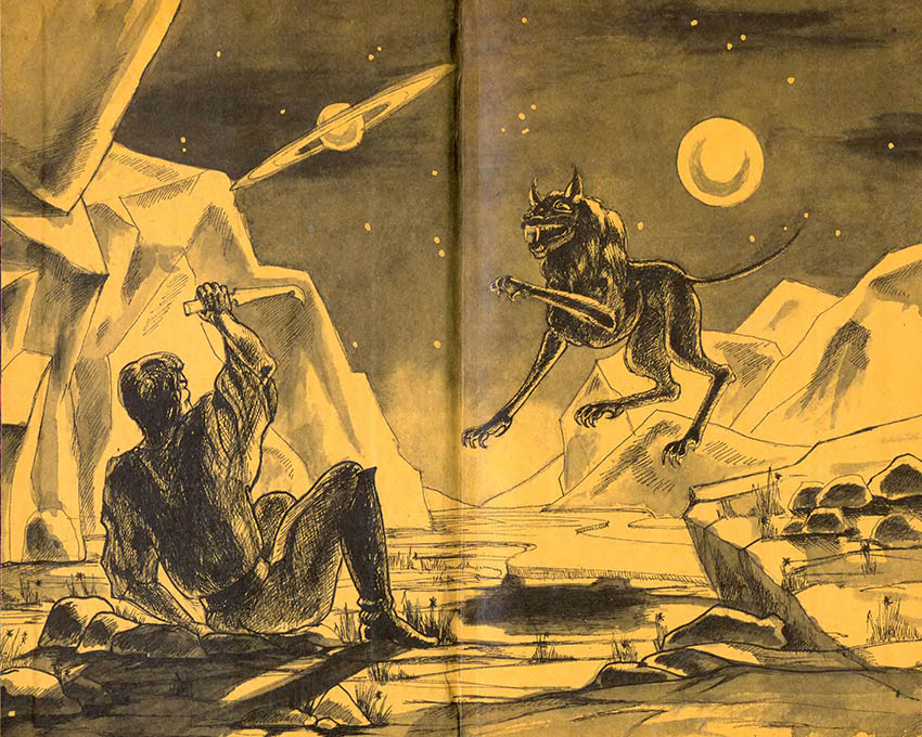 Споткнувшись о чье-то тело, я упал вперед, чуть не угодив в костер. Мои руки упали на лучемет — вещь, которую я никак не предполагал найти здесь, но который улегся в моей ладони так же привычно, как разношенная перчатка. Я даже не стал вставать, а лежа нажал кнопку оружия, которое не имело права быть здесь.