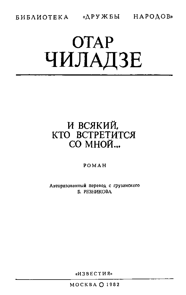 Отар Чиладзе не годится в утешители. Его взгляд на человека зачастую бывает скептическим. Это — скепсис философа, ибо, проводя своих героев через жестокие испытания и потрясения, писатель проверяет пределы нашей, присущей людям, душевной и нравственной стойкости. «И всякий, кто встретится со мной…» — философский роман, убедительно доказывающий, что переделка мира на справедливых началах и обновление человека нераздельно слиты в могучем потоке человеческого бытия.