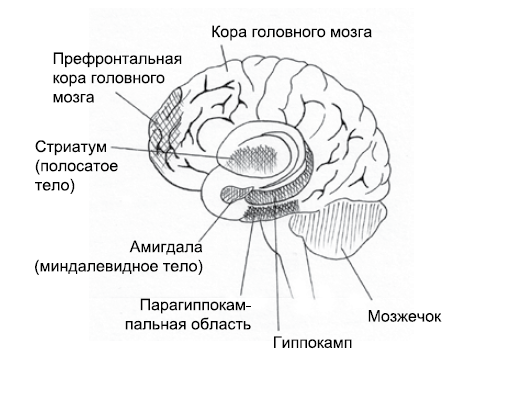Несмотря на то что местонахождением эмоций долгое время считалась лимбическая система (в том числе полосатое и миндалевидное тела), кора головного мозга также обусловливает наше эмоциональное состояние и настроение.