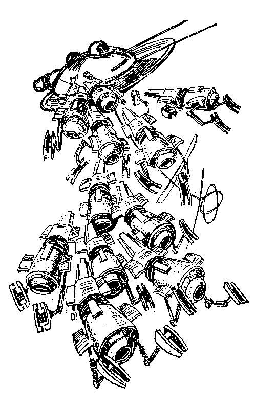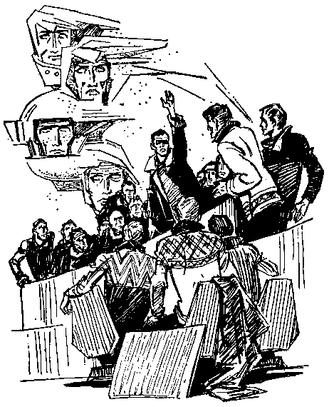 Спринглторп вскарабкался по лесенке, пригнувшись, прошел по коридорчику и остановился, ослепленный ярким светом, у порога штабной кабины.