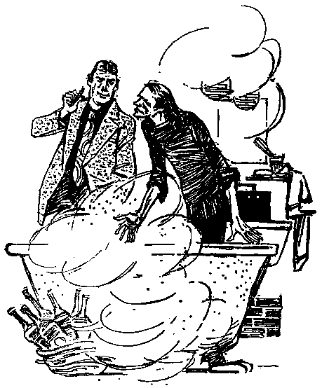 Когда полностью выкипела третья ванна, Джеральд решил, что испытания прошли донельзя удачно и что ему необходимо немедленно отправиться в Вашингтон и вытащить сюда шефа, чтобы поздравить с осуществлением его великолепной идеи и познакомить с Крафтоном, его генератором и финской парной баней, в которой - Джеральд готов был по ставить свои будущие погоны подполковника против десяти центов - шеф никогда не бывал. Крафтон уговаривал заночевать, но Джеральд был непреклонен, и они пошли туда, где уже стоял поднятый из гаража «тандерсторм», при виде хозяина услужливо распахнувший дверцу и выдвинувший кресло. Они обнялись на прощанье, и Джеральд сел было на водительское место, но проклятый динозавр - правильно обозвал его умница Майк! - учуял-таки запах и успел убрать сиденье и захлопнуть дверцу, и Джеральд так и замер в весьма неудобной и не совсем приличной позе на корточках, благо еще не упав от неожиданности. Проклятые хеморецепторы! Он злобно пнул ногой баллон, но тут же скривился, только теперь осознав, что бос и гол, и тогда он поддался на уговоры Крафтона и решил заночевать, но перед сном стоило все же посидеть еще немного и выпить по последней порции… Потом в памяти зиял какой-то провал, за которым следовала картина: голый Крафтон, похожий на шеф-повара адской кухни, огромным черпаком на деревянной ручке помешивает в ванне жуткое варево, которое называет пуншем, и горстями сыплет туда корицу, гвоздику и еще какие-то специи, приговаривая: