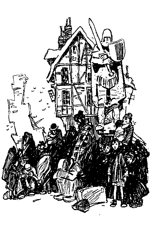 - Слушайте, Спринглторп, - сказал Мартин-отец. - Нам здесь одним не управиться. И черепашка не поможет: стрела у нее коротка. А оттаскивать нельзя, надо поднимать и отводить на весу. Для этого нужна длинная стрела тонн на пять. Мне бы сразу сообразить. Знаете что? Езжайте в военный городок и просите большой автокран. Должны же они нам помочь! Отвезите туда заодно мальца в лазарет, а Мардж скажите - пусть поездит по соседям, поглядит, как и что. Таких домов здесь поблизости десятка два. Разве это дома!