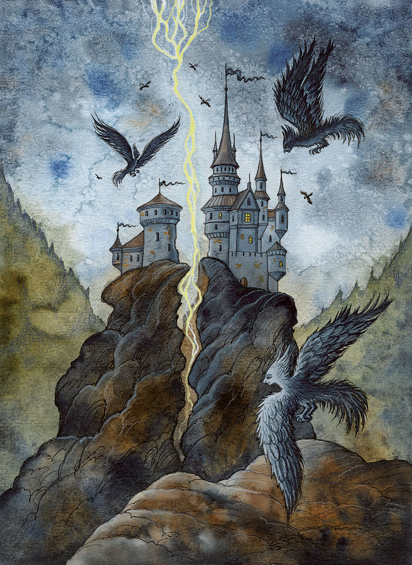 Да, молния действительно ударила, и еще как! В этом они убедились, как только рассвело. Старый-престарый разбойничий замок, стоящий на самой вершине разбойничьей горы, раскололся пополам сверху донизу, от зубцов на башне до самых глубоких подземелий. И между этими половинами зияла пропасть.