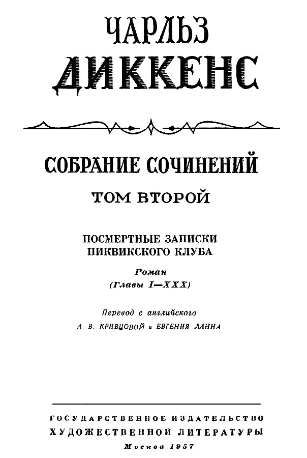Был я молод — мне было двадцать два — двадцать три года, — когда мистеры Чепмен и Холл, обратив внимание на кое-какие произведения, которые я помещал тогда в газете «Морнинг Кроникл» или писал для «Олд Монсли Мегезин» (позже была издана серия их в двух томах с иллюстрациями мистера Джорджа Крукшенка), явились ко мне с предложением написать какое-нибудь сочинение, которое можно издать отдельными выпусками ценой в шиллинг — в то время я, да, вероятно, и другие знали о таких выпусках лишь по смутным воспоминаниям о каких-то нескончаемых романах, издаваемых в такой форме и распространяемых странствующими торговцами по всей стране, — помню, над иными из них я проливал слезы в годы моего ученичества в школе Жизни.