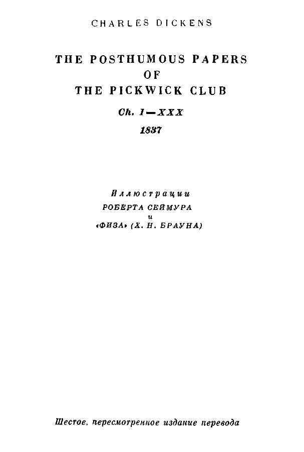 (обратно)Р. Сеймур сделал только семь гравюр, две гравюры — Р. У. Басс (которые не переиздавались), остальные — «Физ» (X. Н. Браун). (Прим. переводчика.).