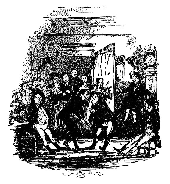 — Так, значит, не шпионы? Нет? — обратился молодой человек к мистеру Пиквику, уверенным движением локтей раздвигая физиономии собравшихся, чтобы проложить себе дорогу сквозь толпу.
