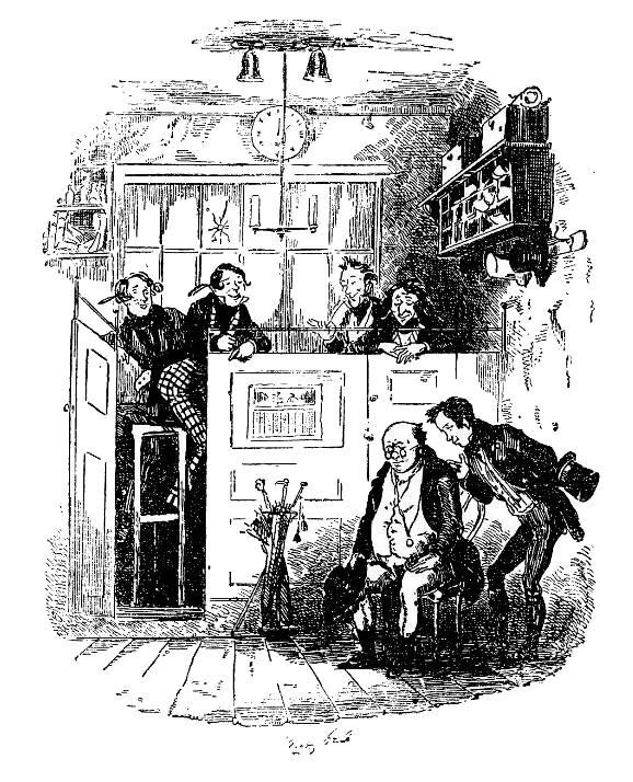 «Очередной» кэб был извлечен из трактира, где он курил свою очередную трубку, и мистер Пиквик со своим чемоданом ввалился в экипаж.