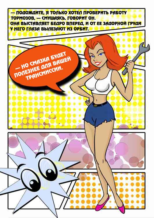 — Мой любимый эпизод этот, — говорит писклявый, взлохмаченный, угловатый подросток, указывая на кадр в комиксе, как Мистер Оргазм спасает десяток грудастых красоток с необитаемого острова, где они слишком долго были лишены секса.