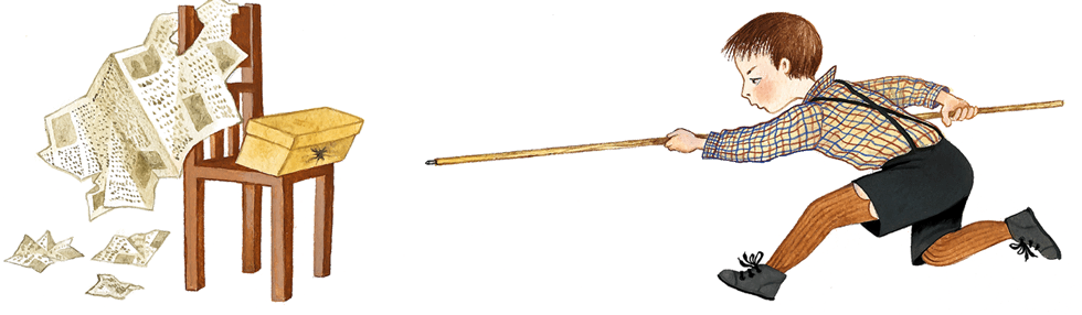 Она очень удивилась, увидав, что оба её прекрасных сына, лёжа на спинах, орут и колотят каблуками по стене, да так здорово, что трясутся картины над диваном и гудит пружина стенных часов.