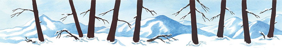 Потом пошёл танцевать лес. Деревья, что были поближе, прыгали быстро, а дальние двигались медленно, как будто их тихо кружила славная снежная река.