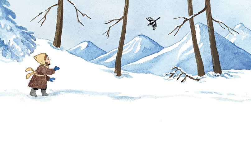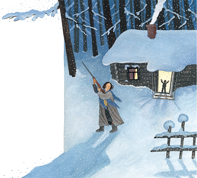 Вот лесной домик. В огромных валенках, в одной рубашке и с кошкой в руках выскочил на крыльцо мальчишка. Трах! – кошка кувырком полетела в пушистый сугроб и, неловко карабкаясь, запрыгала по рыхлому снегу. Интересно, за что это он её бросил? Вероятно, что-нибудь со стола стянула.